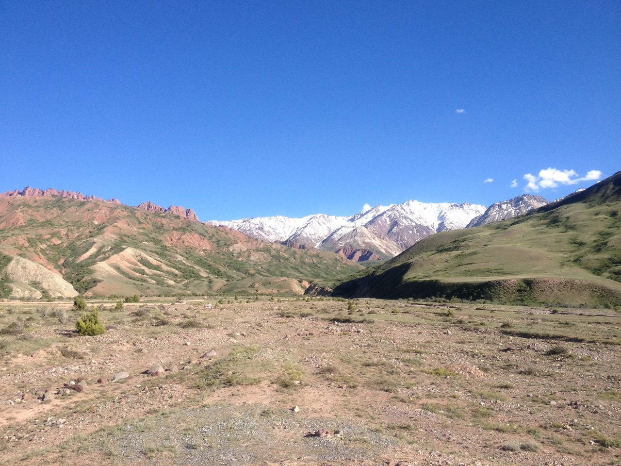行けると言われたのでお金を払っていた乗り合いタクシー運転手と言い合いになり、この美しい山が見える大平原で降りました。